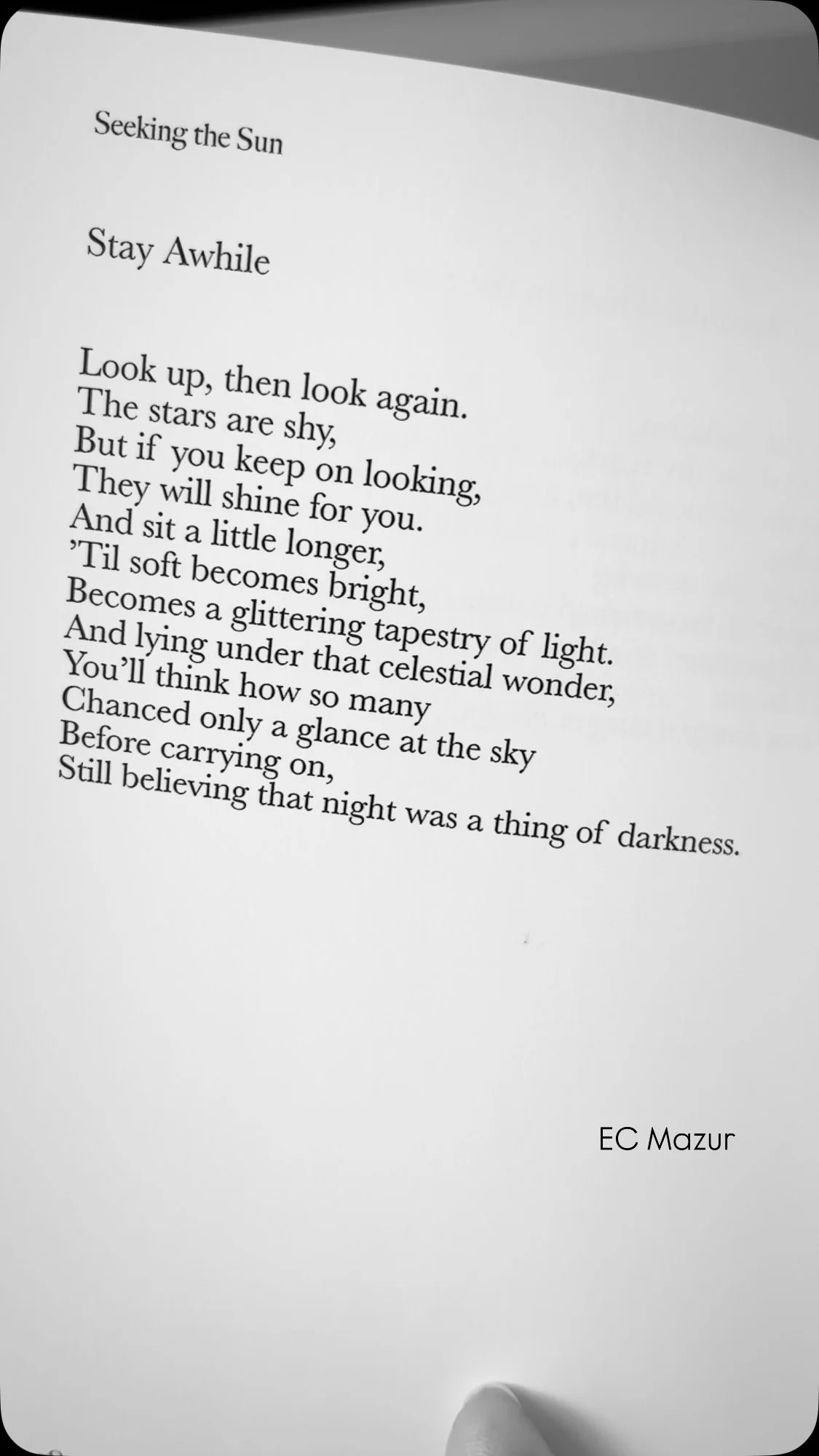 Ella began writing poetry in 2022, and published her first collection, Seeking the Sun, in 2024. Working with words has become a new way of bringing dreamscapes to life, and allowed her to return to performance.